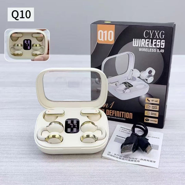 Les écouteurs sans fil Q10 sont des earbuds Bluetooth haute définition de la marque CYXG, conçus pour offrir une expérience audio immersive et une liberté de mouvement totale. Ils sont livrés avec un boîtier de charge élégant équipé d'un écran numérique indiquant le niveau de batterie.